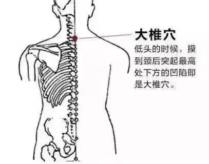 【位置】颈后正中,第7颈椎棘突下凹陷处。